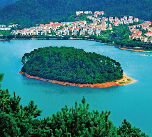 芙蓉リゾート地區は山、林、湖、泉という景観を以て有名となり、優れた自然景色や神話伝説があり、沢山の人文古跡のある旅行勝地になっている。芙蓉峰は芙蓉山とも言い、海抜は360 メートルで、山々は幾重にも重なり合ったりして、半徑の數十キロまで山上の石表面に墨色があり、しかも芙蓉花の形を示している。芙蓉峰に桃花水母が鑑賞できる可能性がある。桃花水母とは名実ともに活化石であり、極めて高い研究価値と観賞価値がある。