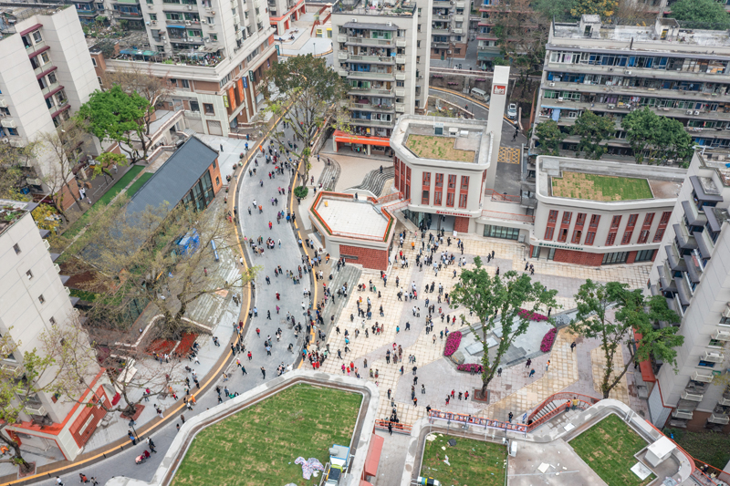 重慶市九龍坡區(qū)謝家灣街道民主村社區(qū),過去大量居民樓年久失修,環(huán)境臟亂。依托城市更新,如今這里成為幸福宜居之地。