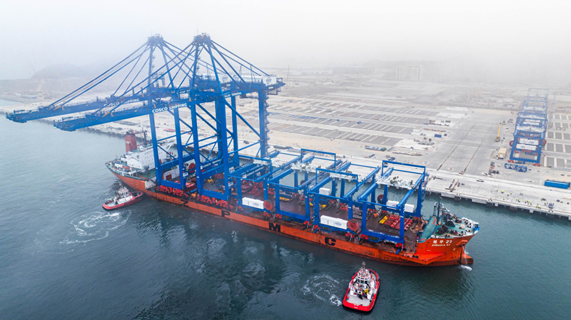 2024年6月27日,岸邊集裝箱起重機和軌道吊運抵秘魯錢凱港。