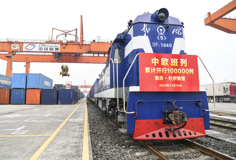 2024年11月15日,第10萬列中歐班列——X8083次中歐班列(重慶—杜伊斯堡)在重慶團結(jié)村中心站準備發(fā)車。