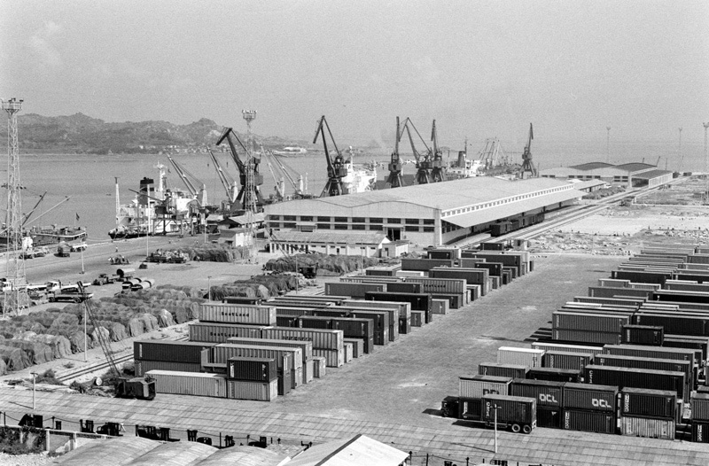 這是廈門經濟特區東渡碼頭集裝箱碼頭(1985年攝)。
