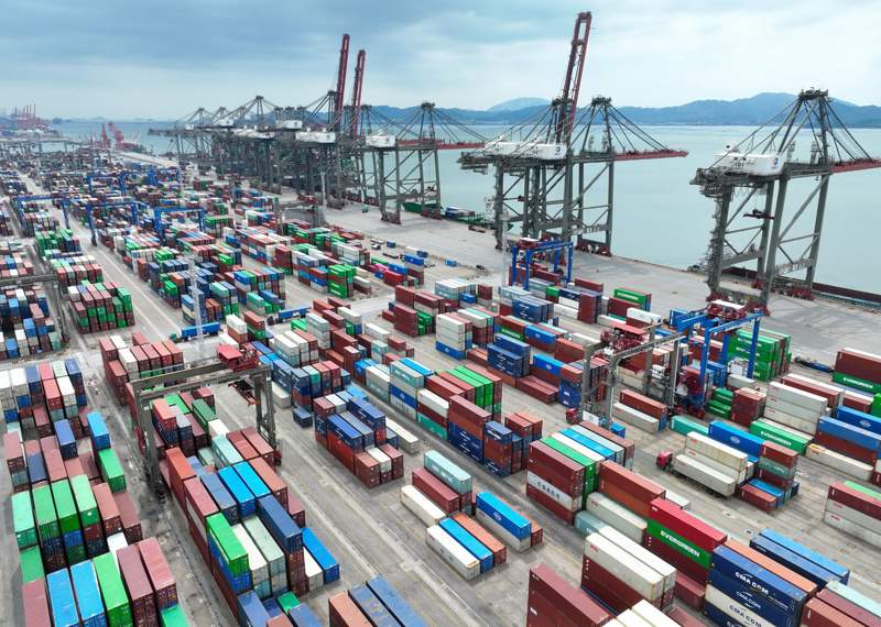 這是2024年10月15日拍攝的中國(福建)自由貿易試驗區廈門片區集裝箱碼頭(無人機照片)。