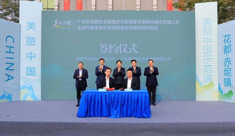 2月13日,廣州市生態環境局與花都區政府在花都區赤坭竹洞村召開全面推進赤坭鎮建設美麗中國示范鎮工作實施方案發布會暨投融資合作項目簽約儀式,聯合發布《廣州市花都區全面推進赤坭鎮建設美麗中國示范鎮工作實施方案》,國家開發銀行廣東省分行與廣州智都現代農業發展有限公司就“美麗花都”暨全域土地綜合整治項目簽署融資貸款協議。