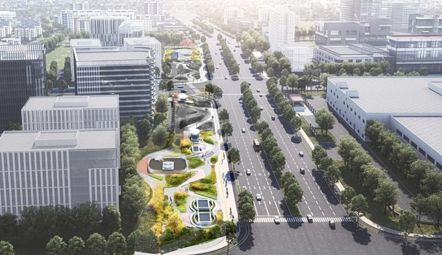在此基礎上,功能復合,無縫銜接城市功能。通過“隱藏式”設計,將車站出入口及風亭嵌入口袋公園,配套座椅、休憩乘涼、體育運動、文藝展陳、夜間經(jīng)濟等設施,打造集多功能于一體的公共空間。