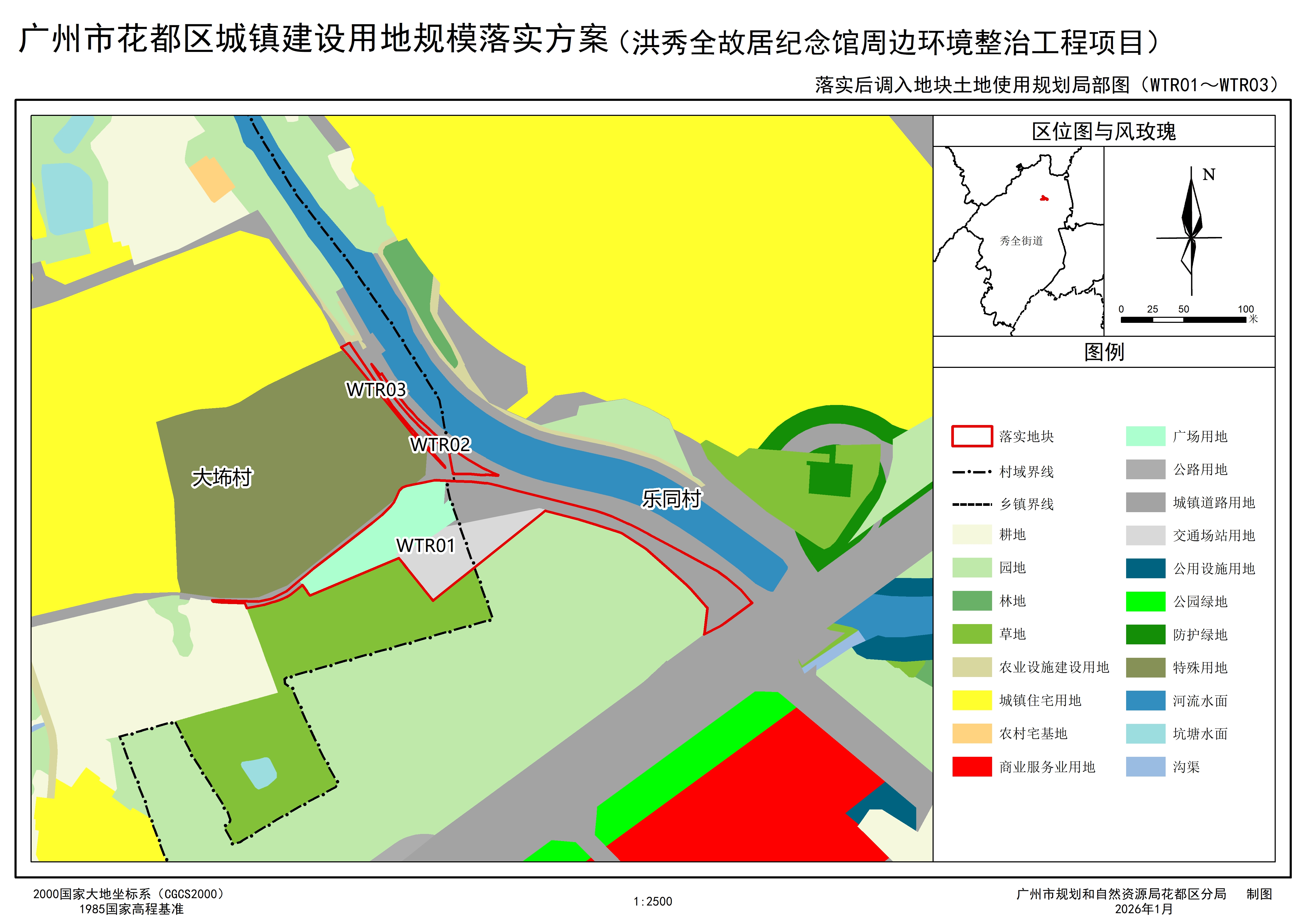 為優化用地布局,提升人居環境品質,現加快推進洪秀全故居紀念館周邊環境整治工程項目的規模落實工作,按照《自然資源部關于做好城鎮開發邊界管理的通知(試行)》(自然資發〔2023〕193號)、《廣東省自然資源廳關于做好城鎮開發邊界管理的通知(試行)》(粵自然資發〔2024〕4號)和《廣東省自然資源廳關于規范城鎮建設用地規模落實和建設用地周轉規模使用報批材料的通知》(粵自然資規劃〔2025〕1361號)有關要求,我局擬在花都區城鎮開發邊界外新增城鎮建設用地規模,形成《廣州市花都區新增城鎮建設用地規模落實方案(洪秀全故居紀念館周邊環境整治工程項目)》方案。