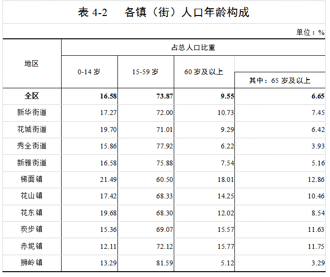 根據(jù)第七次全國人口普查結(jié)果,現(xiàn)將2020年11月1日零時(shí)我區(qū)10個(gè)鎮(zhèn)(街)的常住人口年齡構(gòu)成情況公布如下: