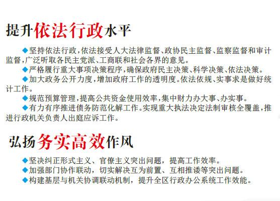 完成既定目標,關(guān)鍵在于落實。我們將不忘初心、牢記使命,狠抓落實,努力打造“公平正義、依法行政、務(wù)實創(chuàng)新、高效廉潔”的人民政府。