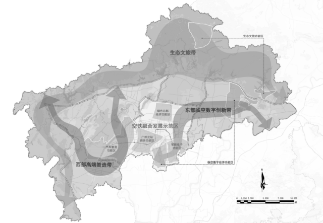按照《綱要》,花都將構建“一核引領、三帶聯動、六大功能區支撐”產業新格局,全力打造花都經濟高質量發展增長極。其中,一核即空鐵融合發展示范區;三帶即東部臨空數字創新帶、西部智造帶、北部生態文旅帶;六大產業功能區即汽車智造功能區、臨空數字經濟功能區、智能電子功能區、綠色總部經濟功能區、廣州北站商務功能區、生態文旅功能區。