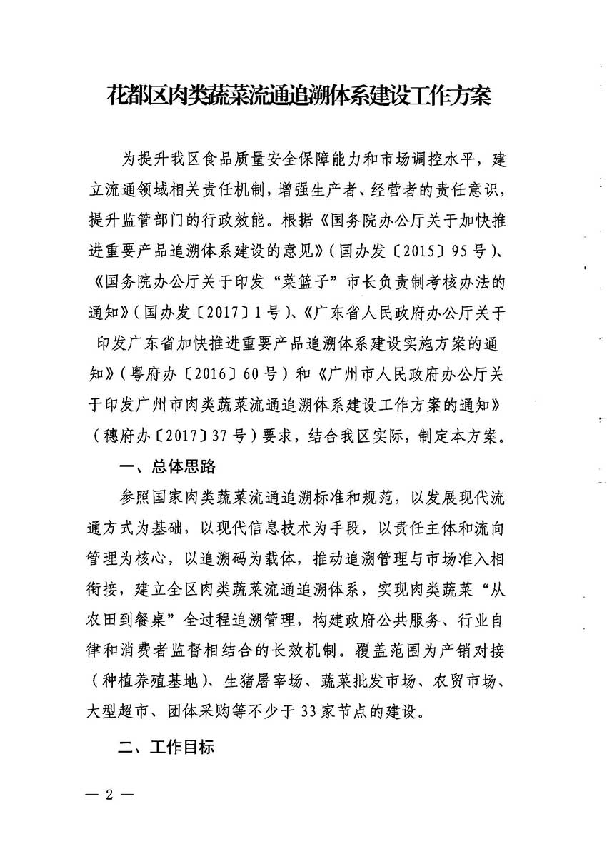 廣州市花都區人民政府辦公室關于印發花都區肉類蔬菜流通追溯體系建設工作方案的通知【花府辦〔2018〕15號】(已失效)