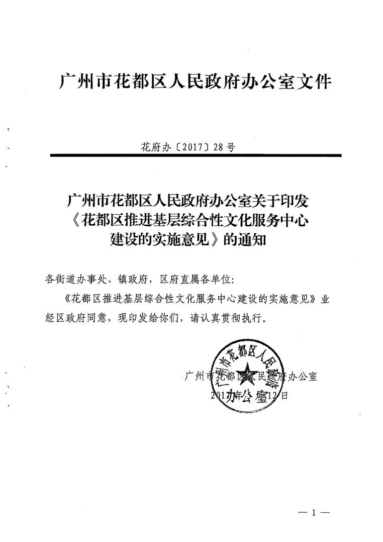 廣州市花都區人民政府辦公室關于印發《花都區推進基層綜合文化服務中心建設的實施意見》的通知【花府辦〔2017〕28號】