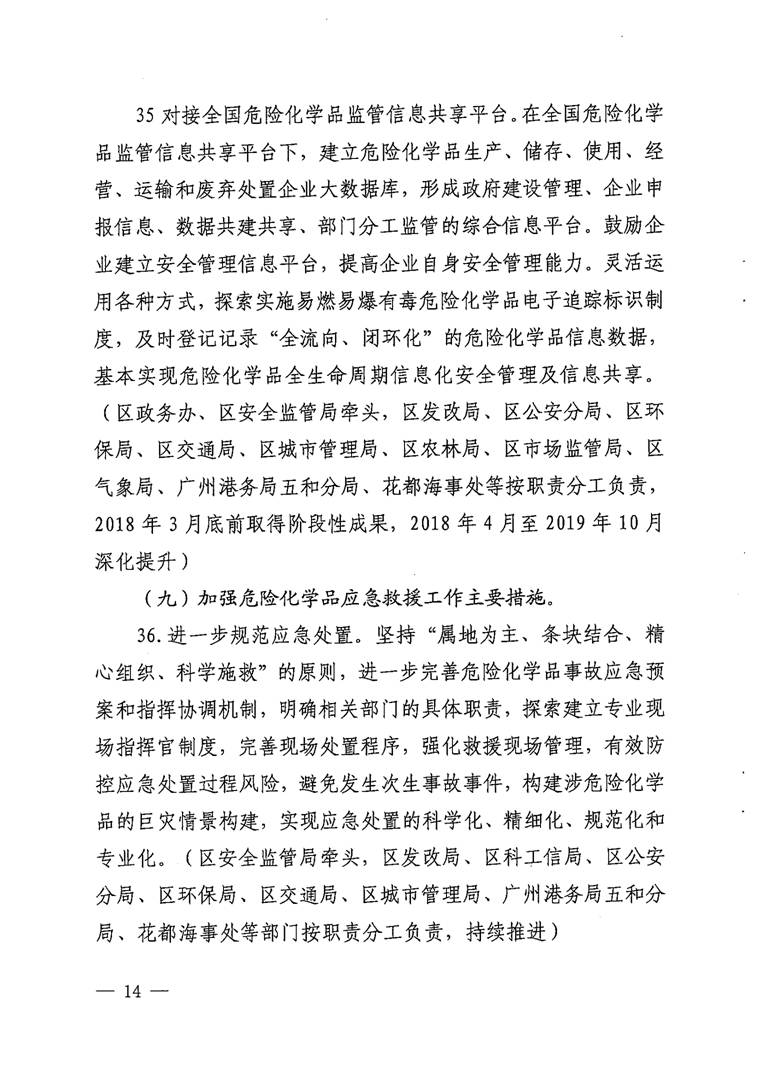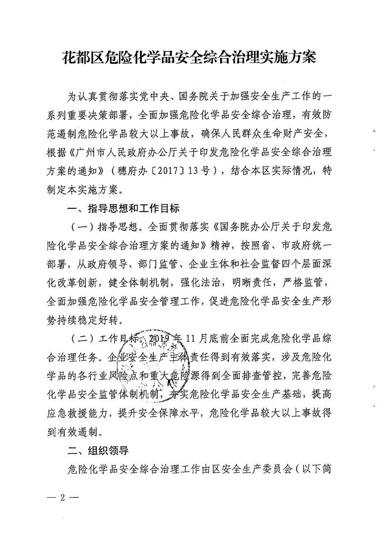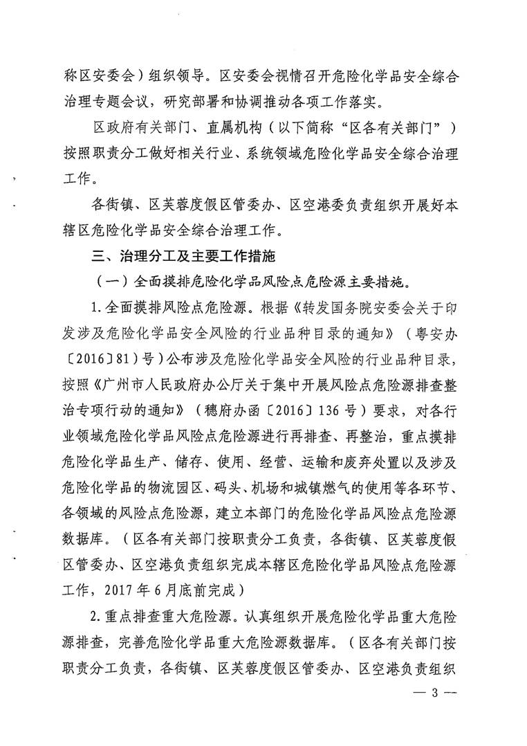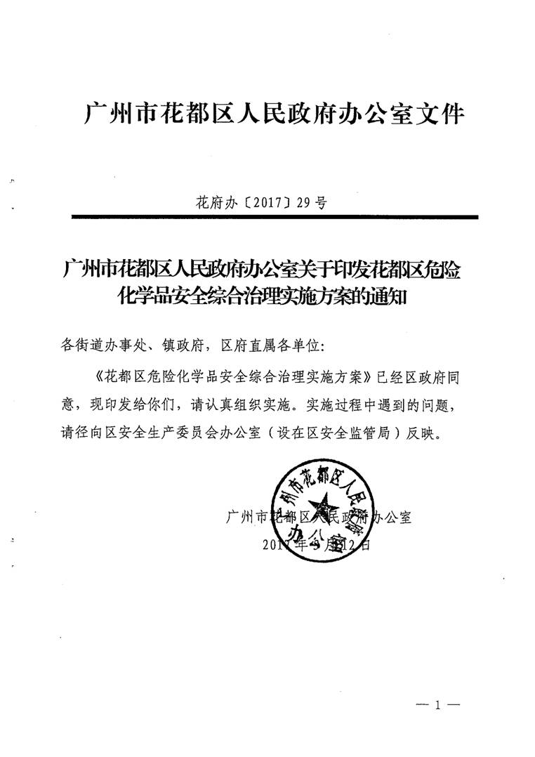 廣州市花都區人民政府辦公室關于印發花都區危險化學品安全綜合治理實施方案的通知【花府辦〔2017〕29號】(已失效)