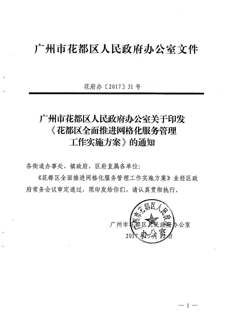 廣州市花都區人民政府辦公室關于印發《花都區全面推進網格化服務管理工作實施方案》的通知【花府辦〔2017〕31號】