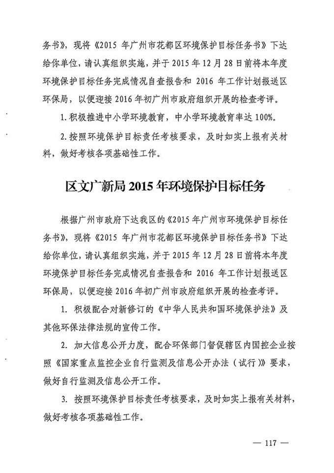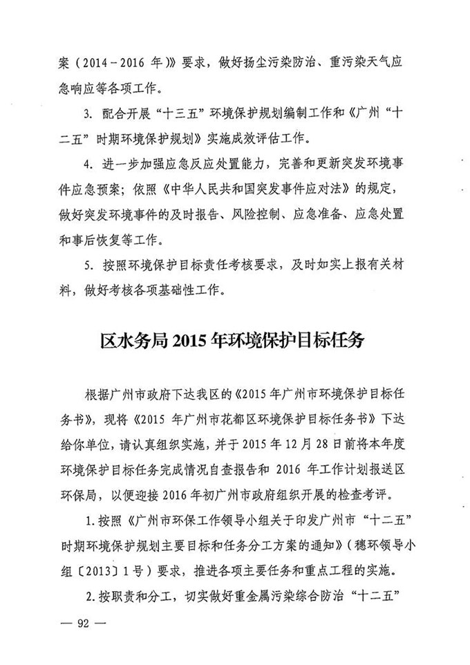 廣州市花都區(qū)人民政府辦公室關(guān)于印發(fā)2015年廣州市花都區(qū)環(huán)境保護(hù)目標(biāo)任務(wù)書的通知 【花府辦[2015]9號(hào)】