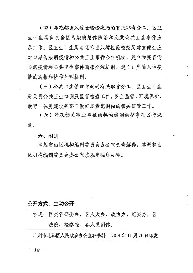 廣州市花都區人民政府辦公室關于印發廣州市花都區衛生和計劃生育局主要職能內設機構和人員編制規定的通知【花府辦[2014]18號】