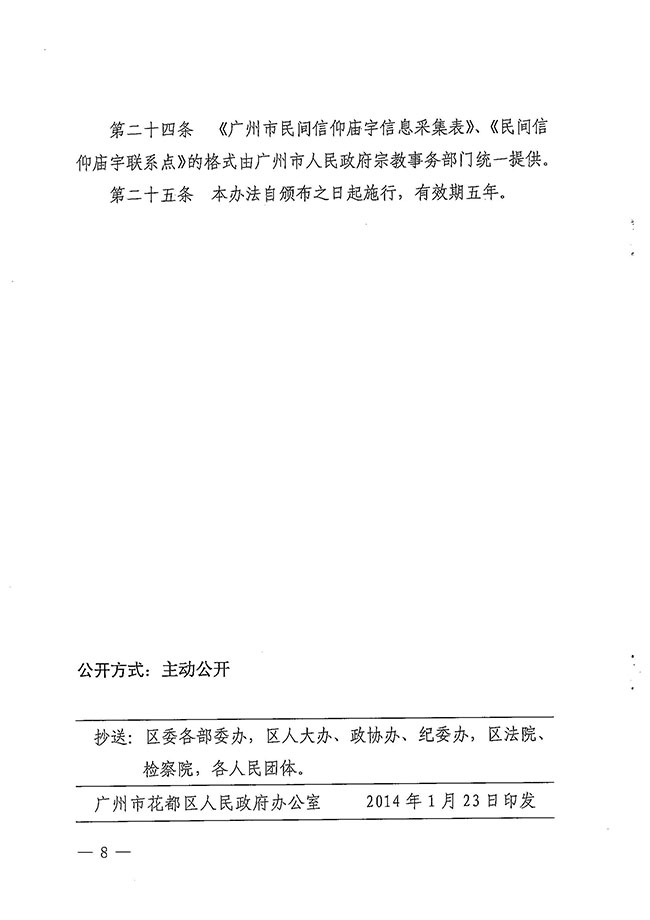 廣州市花都區人民政府辦公室關于印發花都區民間信仰廟宇管理辦法的通知 【花府辦[2014]2號】