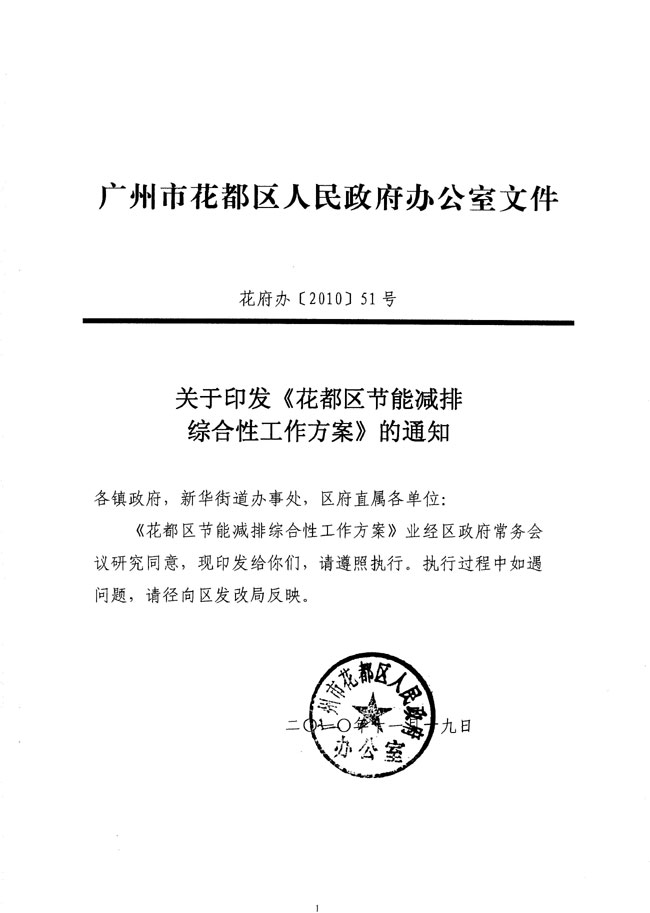關(guān)于印發(fā)《花都區(qū)節(jié)能減排綜合性工作方案》的通知 【花府辦[2010]51號(hào)】