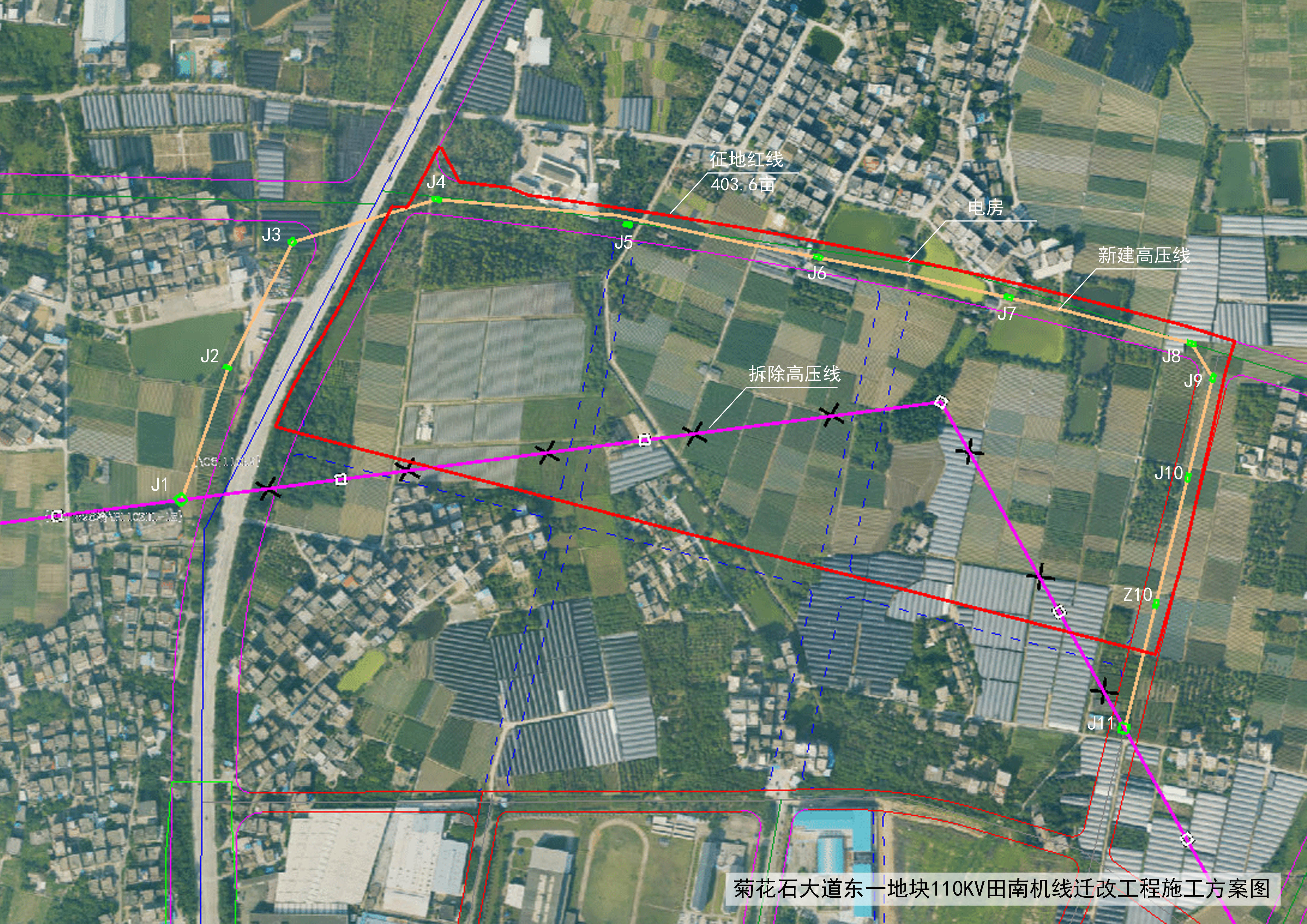 附件:菊花石大道東一地塊110KV田南機線遷改工程施工方案衛(wèi)星圖.jpg