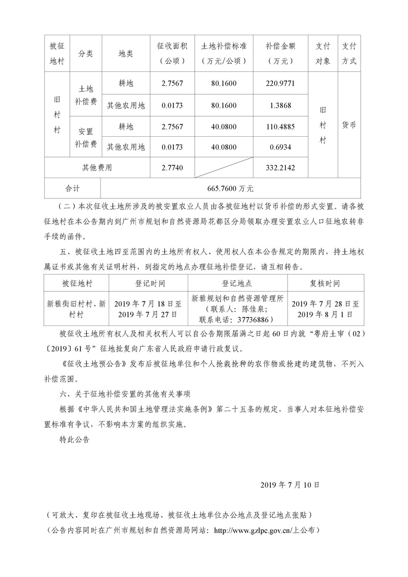 廣州市人民政府征收土地公告--穗府(花)征〔2019〕19號
