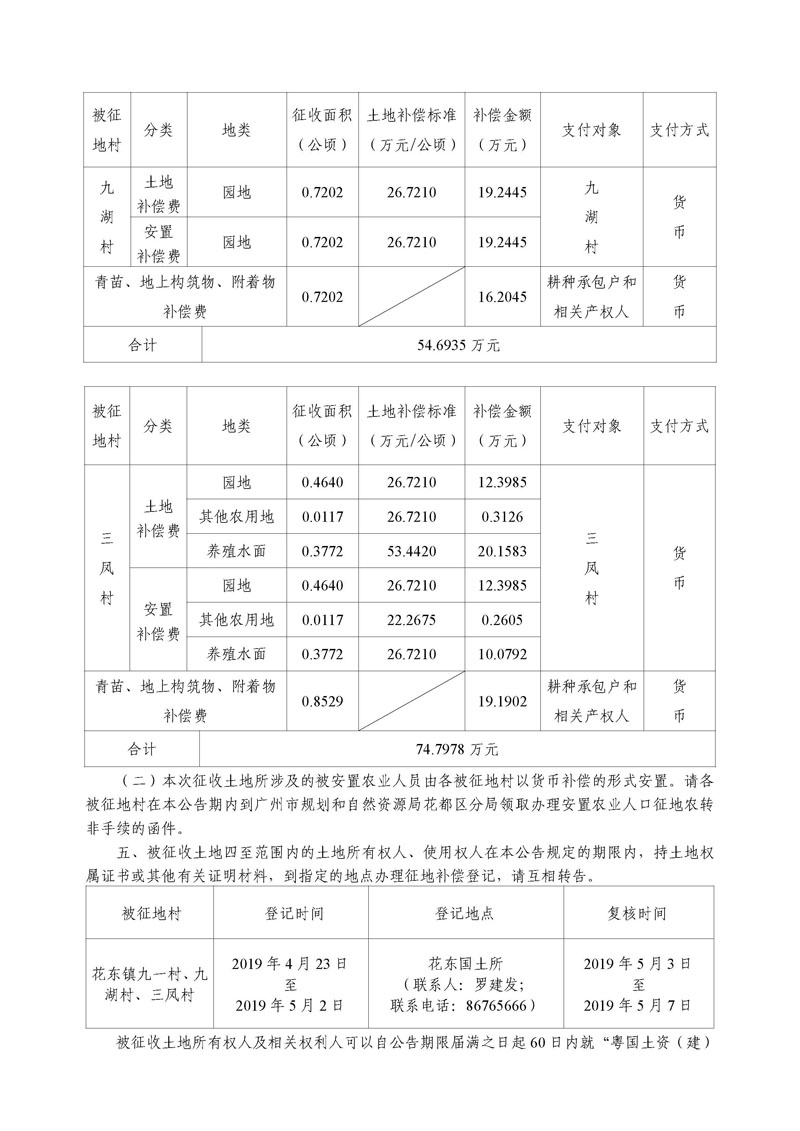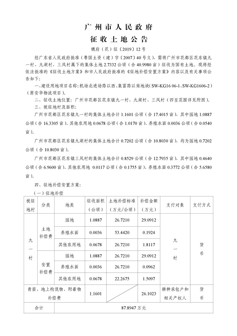 廣州市人民政府征收土地公告--穗府(花)征〔2019〕12號
