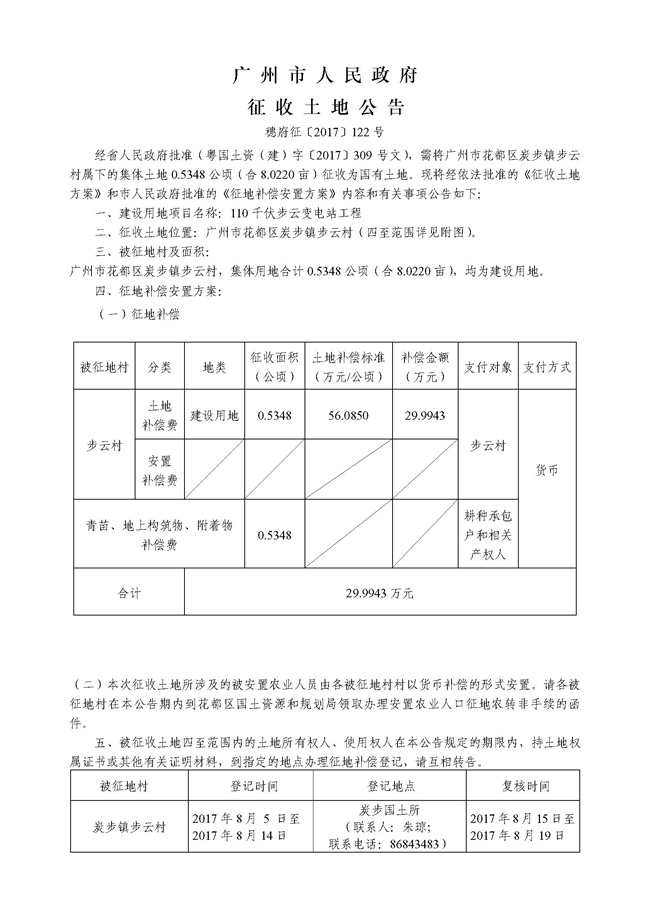 廣州市人民政府征收土地公告——穗府征[2017]116號
