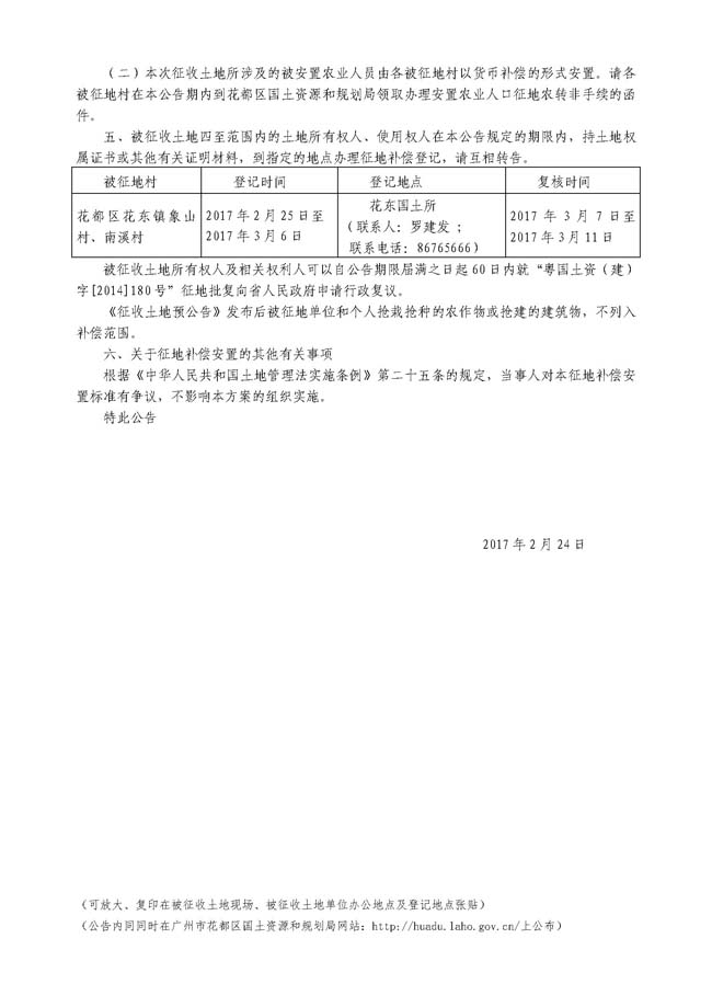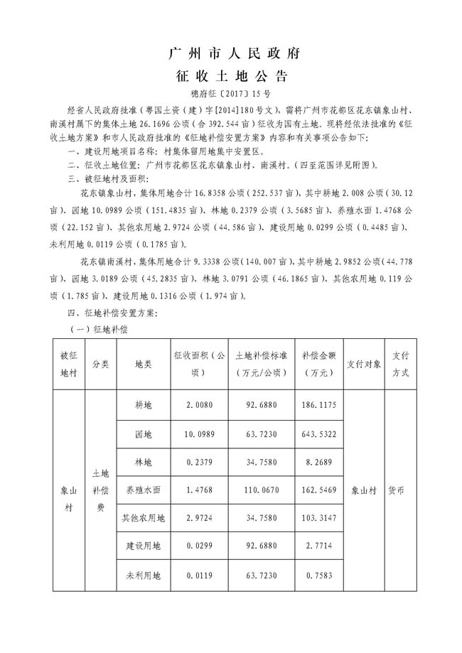 廣州市人民政府征收土地公告——穗府征〔2017〕15號