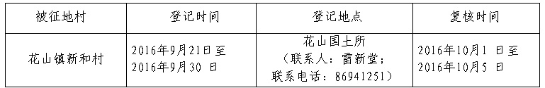 經省人民政府批準(粵國土資(建)字〔2016〕426號文),需將廣州市花都區花山鎮新和村屬下的集體土地13.9904公頃(合209.8560畝)征收為國有土地。現將經依法批準的《征收土地方案》和市人民政府批準的《征地補償安置方案》內容和有關事項公告如下: