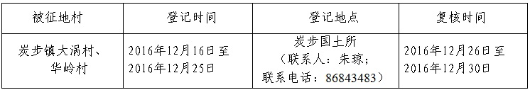 五、被征收土地四至范圍內的土地所有權人、使用權人在本公告規定的期限內,持土地權屬證書或其他有關證明材料,到指定的地點辦理征地補償登記,請互相轉告。