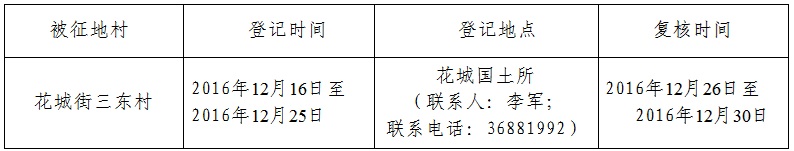 二、征收土地位置:廣州市花都區花城街三東村(四至范圍詳見附圖)。