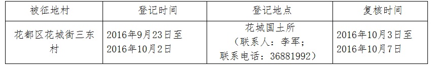 (二)本次征收土地所涉及的被安置農業人員由各被征地村村以貨幣補償的形式安置。請各被征地村在本公告期內到花都區國土資源和規劃局領取辦理安置農業人口征地農轉非手續的函件。