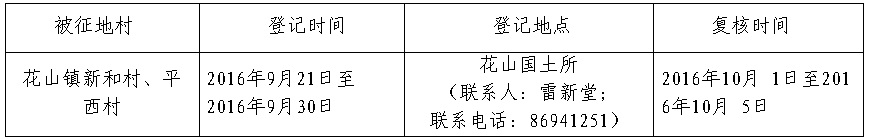 五、被征收土地四至范圍內的土地所有權人、使用權人在本公告規定的期限內,持土地權屬證書或其他有關證明材料,到指定的地點辦理征地補償登記,請互相轉告。