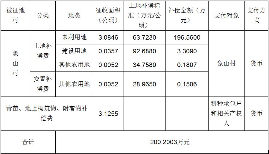花都區花東鎮象山村屬下的集體土地3.1255公頃(合46.8825畝),其中其他農用地0.0052公頃(合0.078畝),集體建設用地0.0357公頃(合0.5355畝),未利用地3.0846公頃(合46.269畝)。