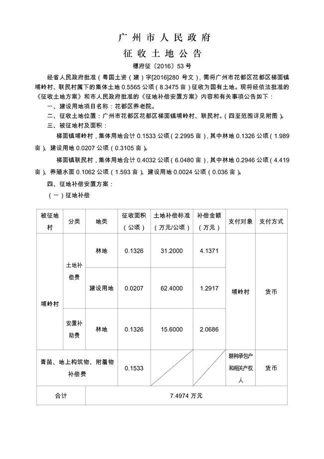 廣州市人民政府征收土地公告——穗府征〔2016〕53號(hào)