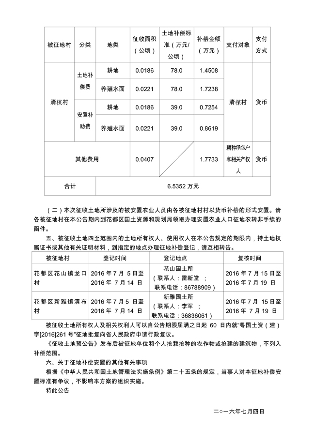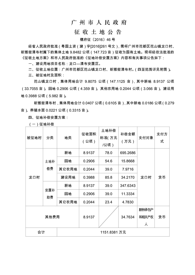 廣州市人民政府征收土地公告——穗府征〔2016〕46號