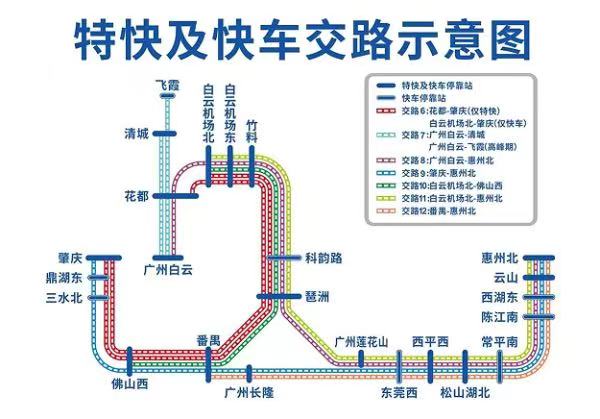 據悉,廣清城際鐵路沿用“站站停+大站快車”公交化運營模式,其中大站快車僅停靠廣州白云站、花都站(廣州北站)、清城站,高峰期增停飛霞站。目前日均開行動車組72列,票價為13元起,“花都站→白云站”方向每天最早經停花都的列車是6點43分,最晚是22點31分。