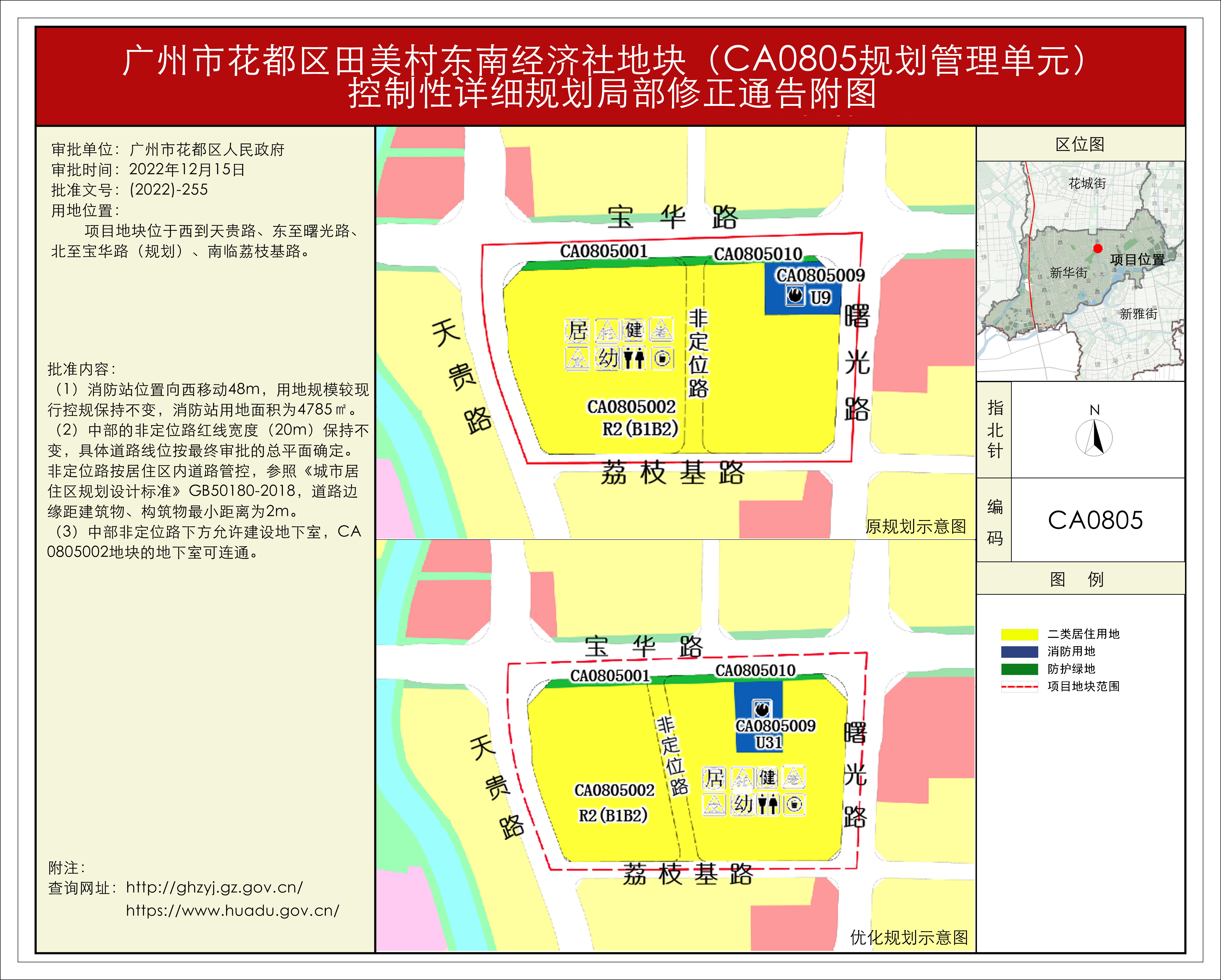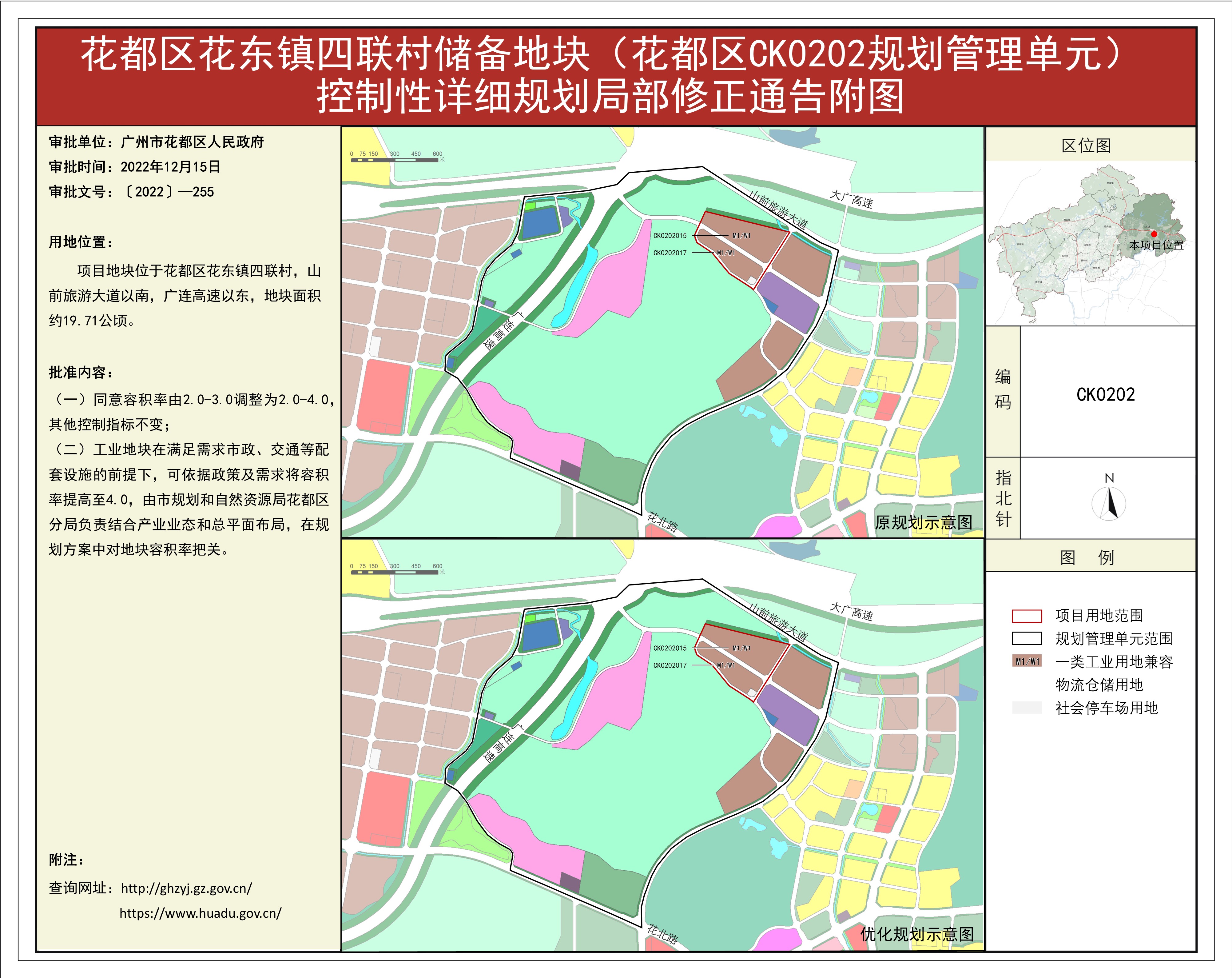 根據《廣東省城市控制性詳細規劃管理條例》的要求,《田美村東南經濟社舊村改造項目、橫潭河西經濟社舊村改造項目控規修正》《廣州風神汽車有限公司花都一工廠、發動機工廠地塊(花都區CB0102規劃管理單元)控制性詳細規劃修正》等62項規劃成果(詳見附件1)已完成批前公示,并經原廣州市花都區城市規劃聯席委員會、現廣州市花都區城市規劃聯席委員會規劃專業委員會審議通過后獲廣州市花都區人民政府(受廣州市人民政府委托)批準(〔2022〕-255),自批準之日(2022年12月15日)起生效。